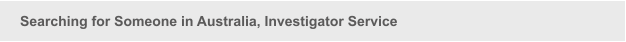 wife (sometimes one will use the others name to hide behind). This assumes you are searching more than 3 or 4 months, but less than about 10 years, and they aren't being pursued by everyone! When you are looking for someone, searching for someone, in Australia, trying to find someone in Australia, contact us for a free quote. For