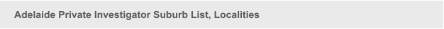 Adelaide private investigators 5000, City of Adelaide, North Adelaide 5006, Auldana 5072, Beaumont private investigator 5066, Beulah Park 5067, Burnside 5066, Dulwich 5065, Eastwood 5063, Parkside 5063, Erindale 5066, Frewville 5063, Frewville 5045, Unley 5061, Glen Osmond 5064, Glenside 5065, Glenunga 5064, Frewville 5086, Hazelwood Park 5066, Kensington Gardens 5068, Kensington Park 5068, Leabrook 5068, Leawood Gardens 5150, Linden Park 5065, Magill 5072, Mount Osmond 5064, Rose Park 5067, Rosslyn Park 5072, City of Burnside Skye 5072, St Georges 5064, Stonyfell 5066, Toorak Gardens 5065, Tusmore 5065, Waterfall Gully Beaumont 5066, Wattle Park 5066, Athelstone 5076, Campbelltown 5074, Hectorville 5073, Magill 5072, Newton 5074, Paradise 5075, Rostrevor 5073, Tranmere 5073.