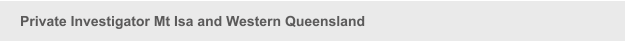 We are a Mount Isa private investigator, Mount Isa private detective, Mount Isa private investigation service, Qld licensed investigators, part of a network of investigators. A private investigator is licensed to investigate, to gather personal information, to conduct private investigator surveillance, or search for a missing person, for reward. We do not spy, we conduct a private investigation, and report to the client.